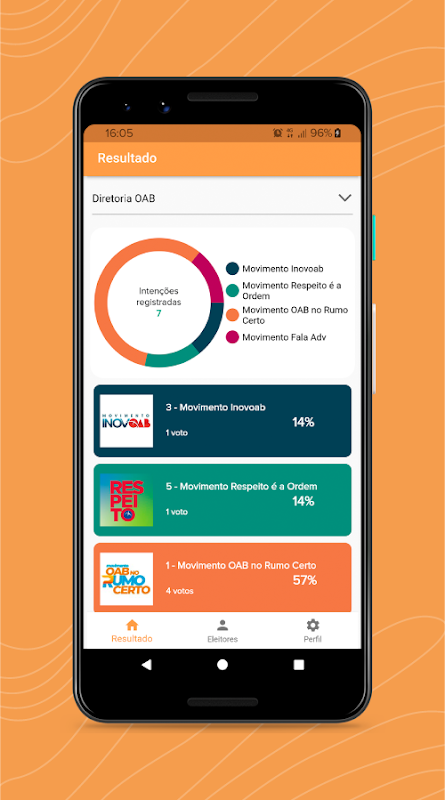 O Monitora Voto permite o acompanhamento de intenção de votos para qualquer tipo de pleito.