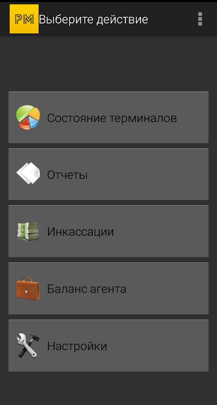 Приложение позволяет получать данные о состоянии терминала и его устройств,