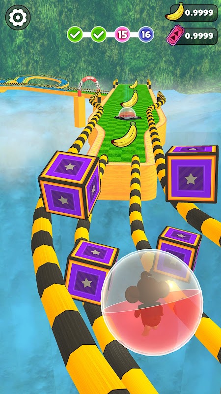 Desliza el dedo en la pantalla para guiar la bola del mono rápidamente o equilibrarla con cuidado. Mantén al mono en las pistas para saltar obstáculos en una increíble carrera de bolas en 3D. Tu objetivo principal es pasar por todos los niveles y lograr la puntuación más alta. ¡Sumérgete en el mundo de los juegos de Monkey Ball 3D sin conexión!