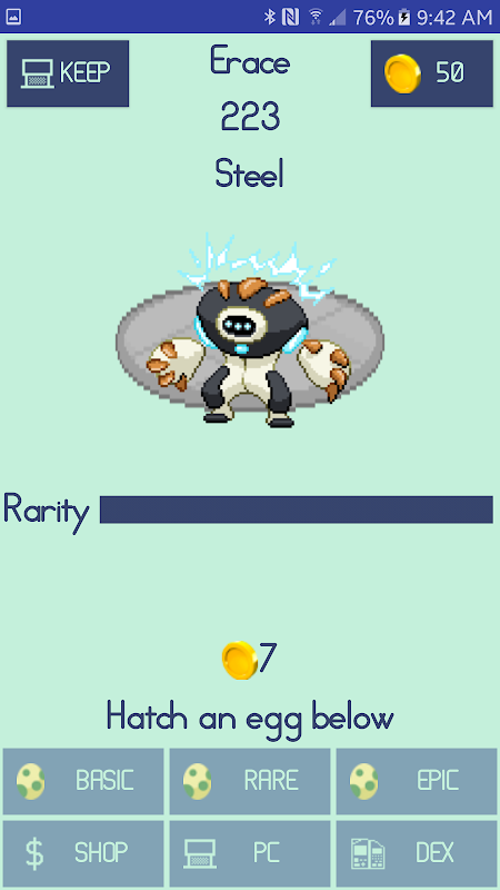You can tap to hatch the egg as many times as you want, and either choose to send the Monsters to your PC or to sell them immediately. When you save up money, you can buy upgrades to get better Monsters, and you can even use your money to instantly hatch eggs, and make getting legendary Monsters even easier!