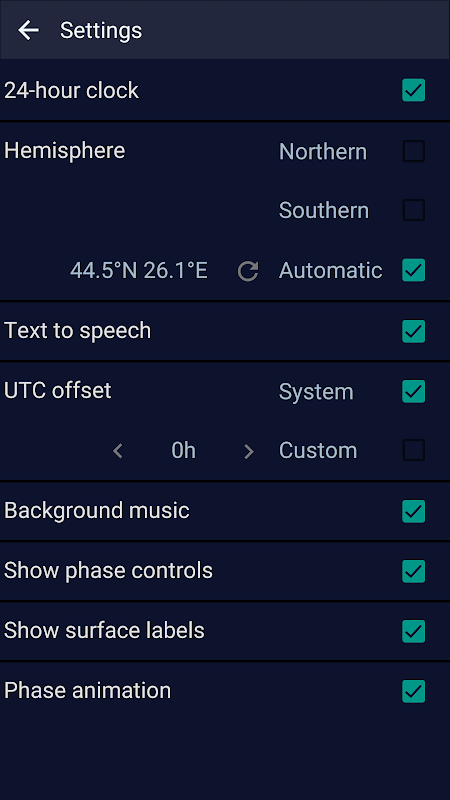 Esta aplicación te muestra la fase actual de la Luna, la luminosidad de su superficie y las horas oficiales de salida y puesta de la Luna para cualquier lugar del mundo. Además, podrás ver la fase lunar para cualquier fecha determinada (a partir de enero de 2020) y los días exactos en los que se producirán los eclipses lunares (totales, parciales o penumbrales). La edad (relativa al período sinódico), el signo del zodíaco y una vista 3D de nuestro cuerpo cósmico más cercano completan la lista de características de las fases lunares y hacen de esta aplicación una herramienta imprescindible para astrónomos y astrólogos. Además, el seguimiento de las fases de la luna puede ayudar a cazadores y pescadores a planificar sus viajes o saber cuál es el mejor momento para cazar o pescar. Por último, se puede ver una galería con múltiples fotografías de alta resolución de los principales cráteres lunares, las montañas lunares y la huella de las botas de Buzz Aldrin.