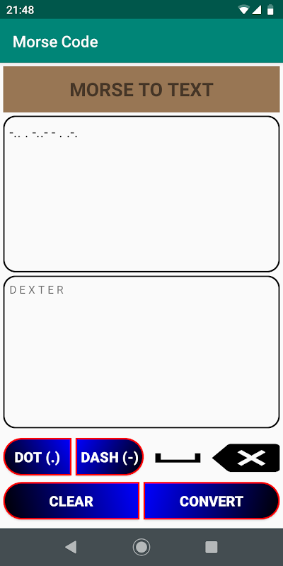 La aplicación Código Morse convierte un texto simple en código morse y viceversa.