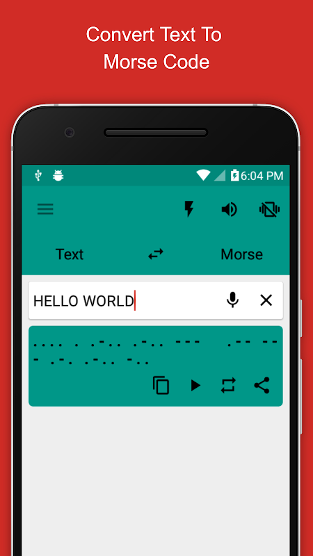 - Reproducción de salida de código Morse usando vibración, flash y tono de audio 📳 🔦 📢