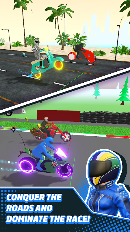 Conviértete en el piloto definitivo: Pon a prueba tus habilidades contra los mejores motociclistas del mundo y asciende en la clasificación para convertirte en el campeón definitivo. Desde novato hasta experto, el camino a la grandeza es tuyo.