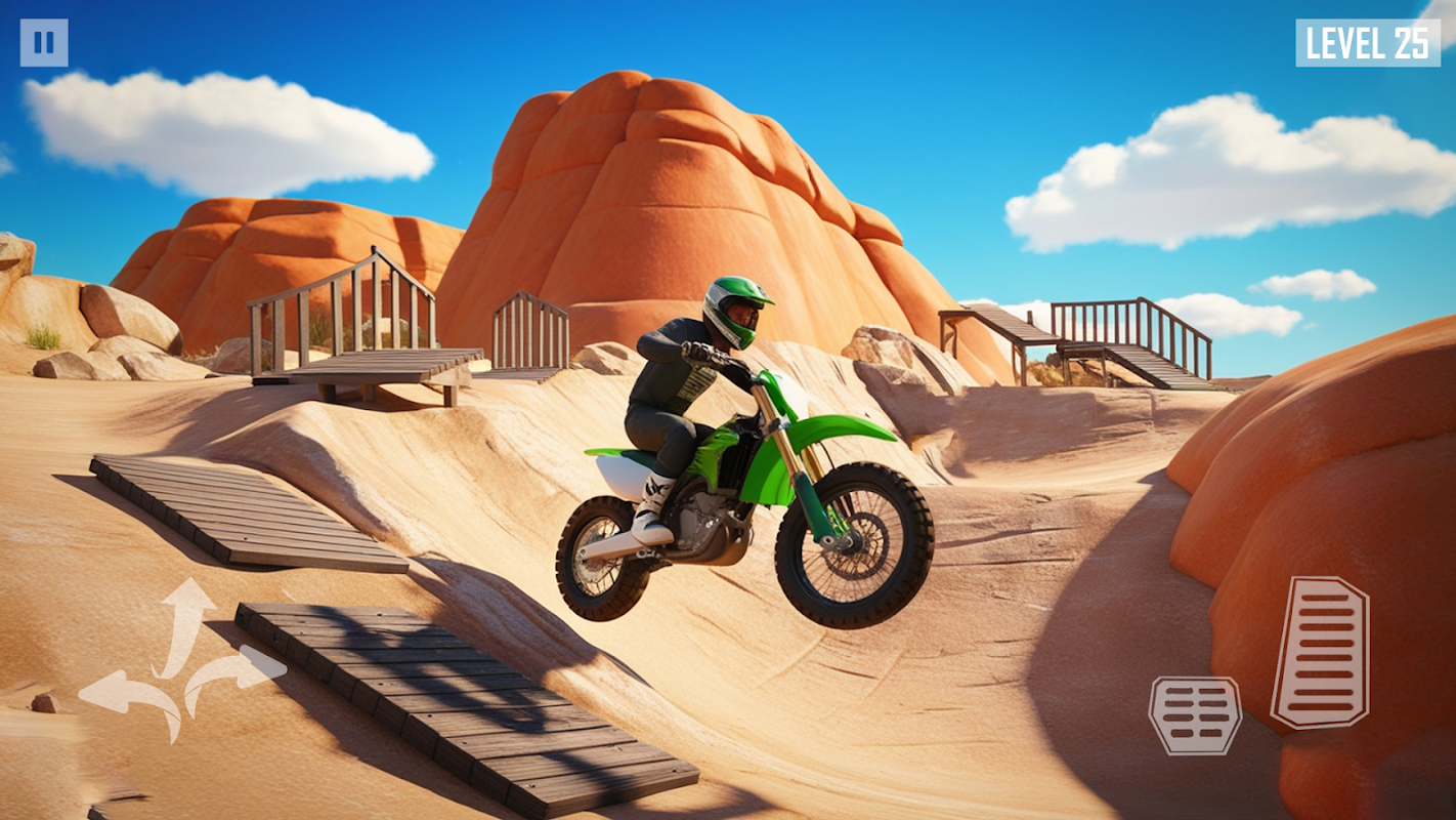 Corre en entornos únicos: tejados de la ciudad, dunas del desierto, montañas heladas y mucho más. ¡Cada nivel está diseñado para llevar tus habilidades de acrobacia en moto al límite!