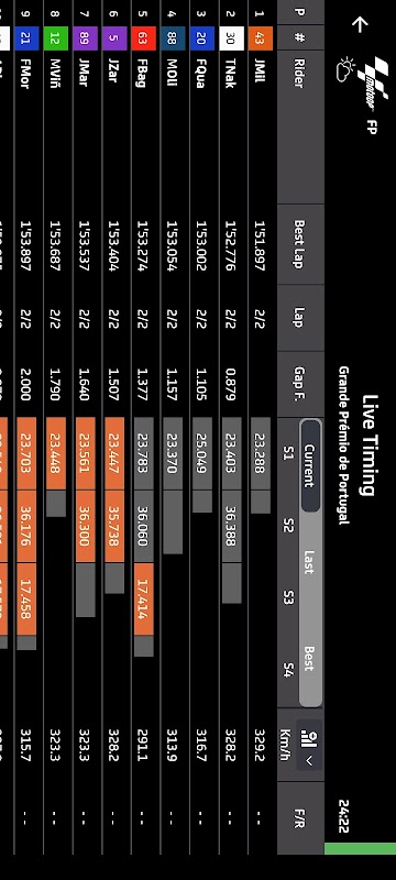 Sigue toda la acción En Directo con la función Live Timing, ampliamente actualizada, y observa el progreso de los tiempos por vuelta a medida que los pilotos recorren a toda velocidad cada sector de la pista. La información meteorológica, los tiempos parciales y los datos exclusivos te permiten ver exactamente el rendimiento a lo largo de cada vuelta y seguir a los pilotos como lo hacen sus equipos y mecánicos. ¡Disponible para ti EN DIRECTO!