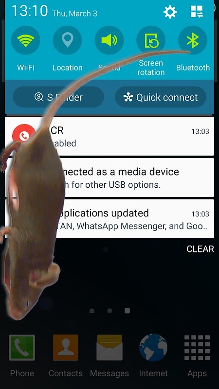 "Ratón en Pantalla de Broma" es una aplicación de entretenimiento que mostrará una animación de un ratón peludo en la pantalla de tu teléfono. El animal caminará de un lado a otro de la pantalla. El ratón correrá, mirará alrededor, olfateará y saldrá corriendo. La horripilante animación del mamífero aparecerá siempre en primer plano. No importa lo que estés haciendo, si estás navegando por Internet, jugando a un juego o escribiendo un correo electrónico, la alimaña estará siempre visible. Puedes configurar en qué esquina de la pantalla se puede mover el animal. El efecto aterrador del roedor es tan realista que puedes asustar a tus amigos de una manera fácil. Pueden llegar a creer que un ratón real está caminando por la pantalla de su teléfono.