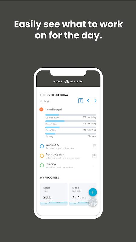 Con la aplicación MOVATI Performance Coaching, puedes empezar a realizar un seguimiento de tus entrenamientos y comidas, medir resultados y alcanzar tus objetivos de fitness, todo con la ayuda de tu entrenador personal.