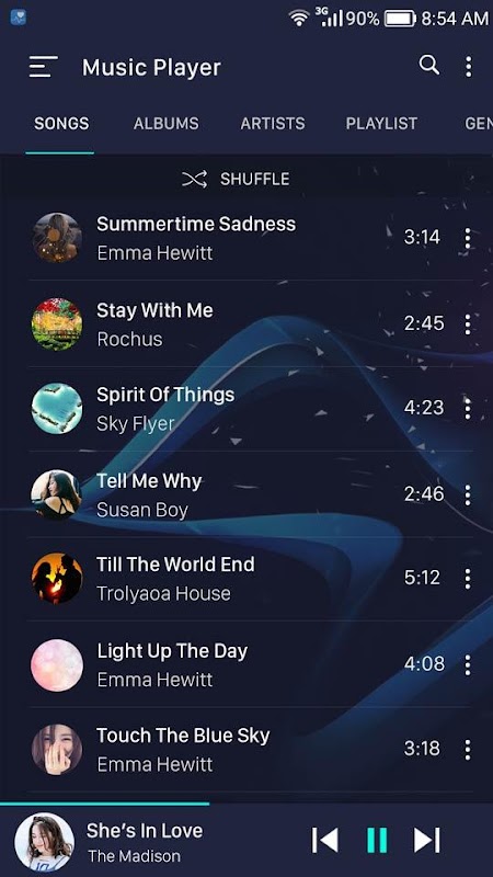 El reproductor de música se basa en artistas o álbumes, y la estructura de directorios. Reproductor de música le guiará a encontrar todos los archivos de música en cuestión de segundos.