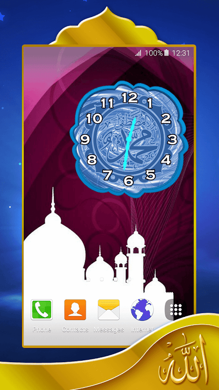 ¿Le gustaría tener el mejor widget de reloj profeta Mahoma? "Widgets reloj libres" están a la espera para todos los musulmanes devotos. Si te gustó "reloj Allah" y si Mahoma Reloj Analógico es algo que siempre has soñado, hermosas widgets reloj islámicos para la pantalla de inicio es una excelente opción para usted! Combinación de "widget de reloj y alarma" le hará realmente feliz. Coincidir con este widget islámica reloj con su analógico Islámica de reloj de pantalla en vivo y disfrutar tema islámica en su dispositivo Android! La mejor widget de reloj le hará apreciar la religión musulmana aún más! Si necesita un reloj de alarma para despertarse libre, ahora usted tiene la oportunidad de levantarse cada mañana a las hermosas canciones musulmanes. Esta "aplicación de reloj" lo tiene todo, todo lo que tiene que hacer es descargar el despertador islámica e instalarlo en su teléfono! Disfrutar de bellas imágenes que los islámicos widgets reloj de oferta libre androide! Muhammad widget de reloj sólo para ti!