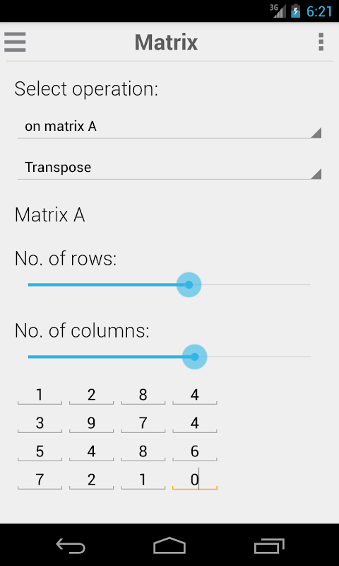 10 different calculators in one single app : Basic, Scientific, Statistics, Programmer, Matrix, Equation solver, Vector calculator, Table mode calculator and Converters (Unit converter, Color converter) .
