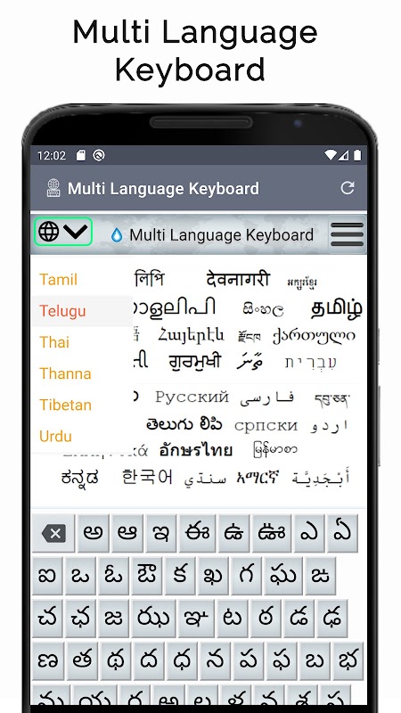 La aplicación Teclado Multilingüe te permite escribir en numerosos alfabetos del mundo. Dispone de teclados para árabe, chino, cirílico (ruso, serbio), devanagari (hindi, nepalí), griego, hebreo, japonés, coreano, tamil, tailandés, tibetano y urdu (consulta la lista completa de idiomas a continuación).