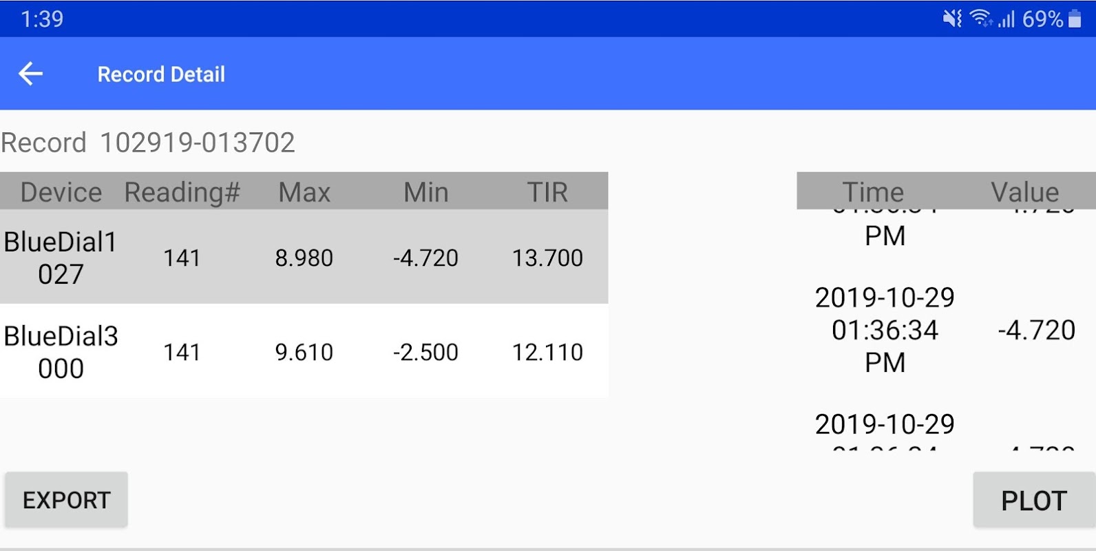 MultiGage Reader ofrece 2 opciones para la grabación de datos: grabación continua a hasta 10 muestras / segundo o captura una por una con solo tocar un botón. Los datos registrados se pueden trazar en un gráfico habilitado para la interacción del usuario o guardarlos en la base de datos local para exportarlos en un archivo CSV por correo electrónico, unidad en la nube o unidad flash para una evaluación adicional.