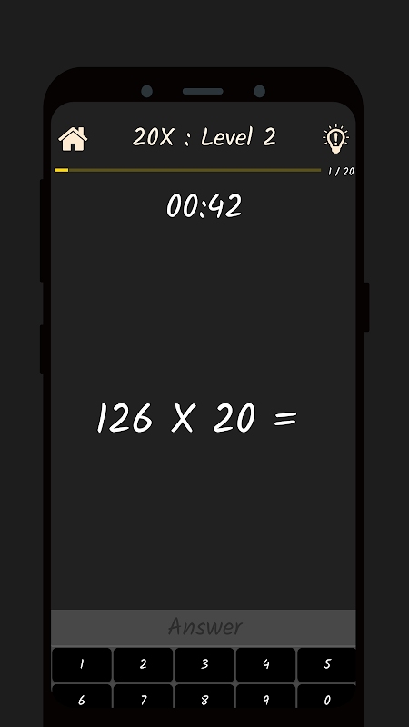 Tiene niveles ilimitados, y una vez que hayas completado la pregunta presentada, la aplicación te llevará automáticamente al siguiente nivel. Actualmente, la mayoría de las preguntas se basan en la multiplicación, pero agregaremos varios tipos de problemas.