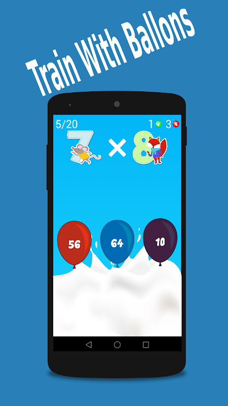 This application allows you to learn multiplication table when playing with enjoyable math ballons. It's the best option to learn all multiplications tables (from 1 to 10) and improve math talents while playing.