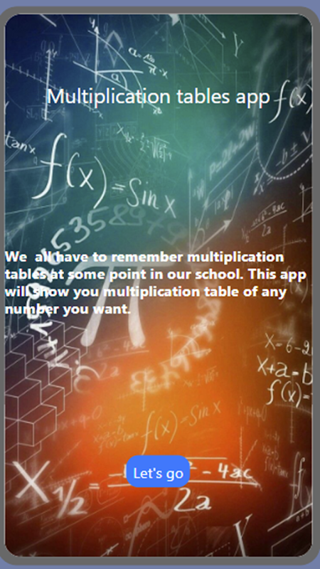 Si escribe cualquier número en el pequeño cuadro de la aplicación, se mostrarán las tablas de multiplicar completas hasta el 10.