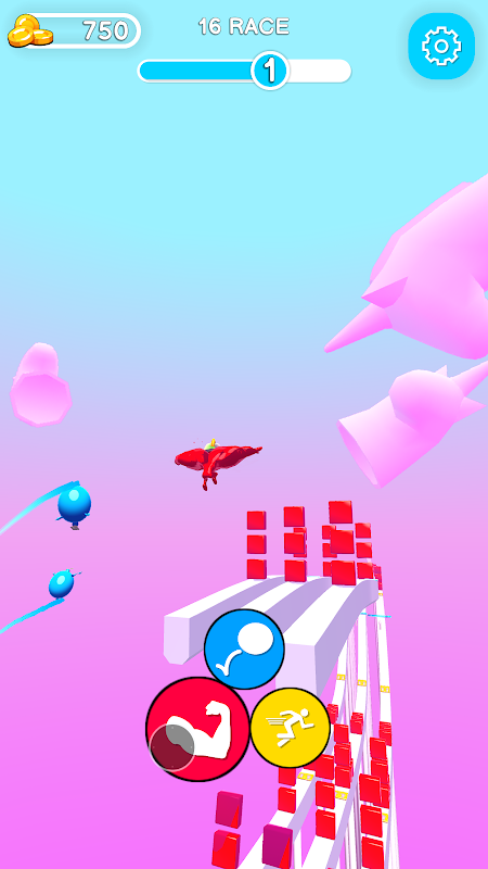 ¡Haz manos súper gigantescas para romper todos los obstáculos en tu camino! ¡Infla los músculos de las piernas para ganar velocidad y salir adelante! ¡Toma la forma de la bola para acelerar al caer! Comienza la carrera y ponte en la forma muscular adecuada para vencer a tus oponentes y hacer que respiren polvo debajo de tus músculos.