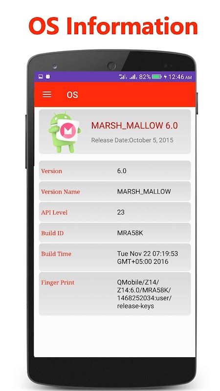 Application Includes *Device Info" "OS Info" "Network Info" Sensors Info" "CPU Info" "Memory Info" "Ram Info" "Mobile Features Info" "Available Features" "Battery Info" "Available Wifi Connections" and much more info.