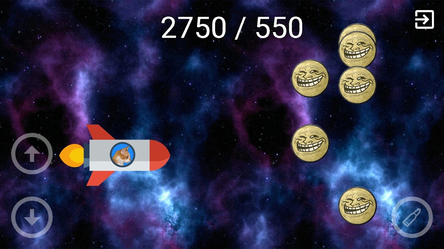 Imagínate como un gato. ¡Conduce tu cohete, dispara a los malos memes!