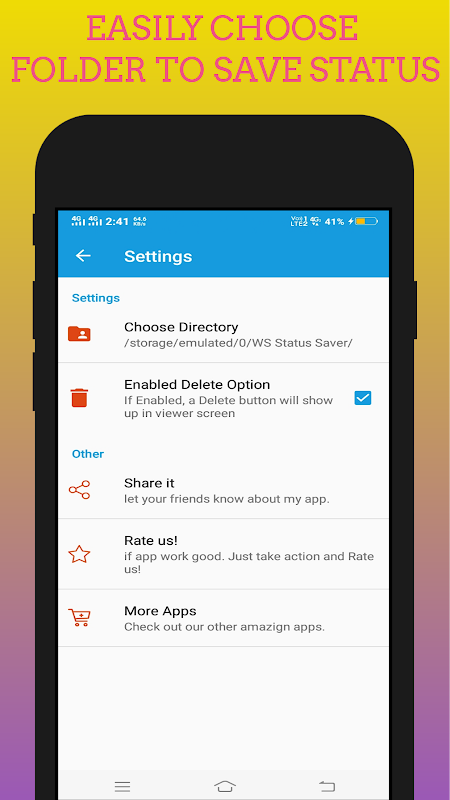Status Saver For WApp app helps you to Save any images and Videos which was shared as a story by your WApp contacts. You can delete those images and Videos from this Status Saver For WApp App Inbuilt Gallery.