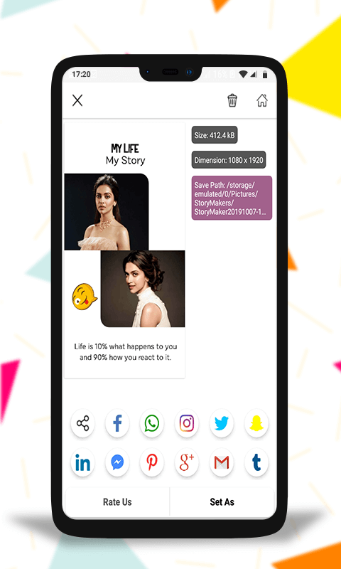 My Story Maker te ayuda a crear hermosos diseños e imágenes de historias para compartir rápidamente en Instagram, Snapchat, Whatsapp, Facebook y otras redes sociales.
