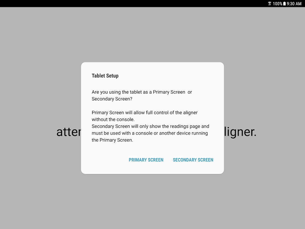 La aplicación MyAligner permite al usuario conectar una tableta Android a un sistema de alineación de ruedas John Bean® V-Series o Hofmann® geoliner® compatible, lo que permite que la tableta se convierta en una pantalla principal o secundaria en sistemas compatibles.