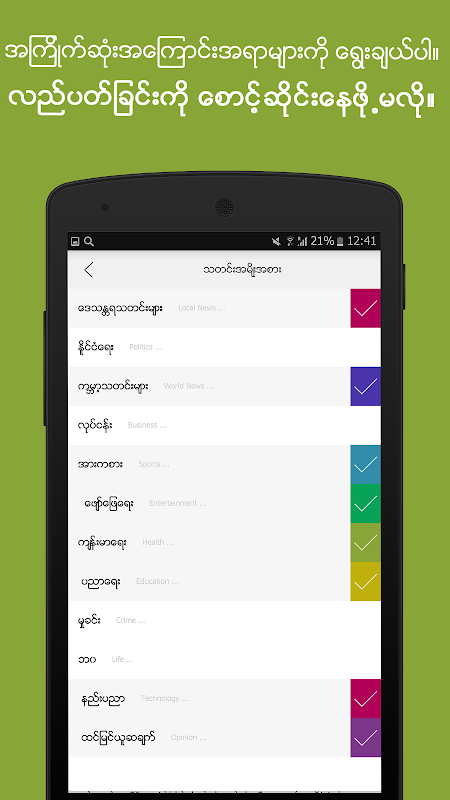 * သတင္းမ်ား အဆင္ေျပေျပ လြယ္ကူေခ်ာေမြ႕စြာ ဖတ္ႏိူင္သည္။