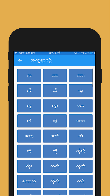 Ministerio de Educacion Departamento de idiomas étnicos de Myanmar La aplicación es una compilación de scripts de ortografía birmanos editados por el equipo de idiomas de Myanmar.
