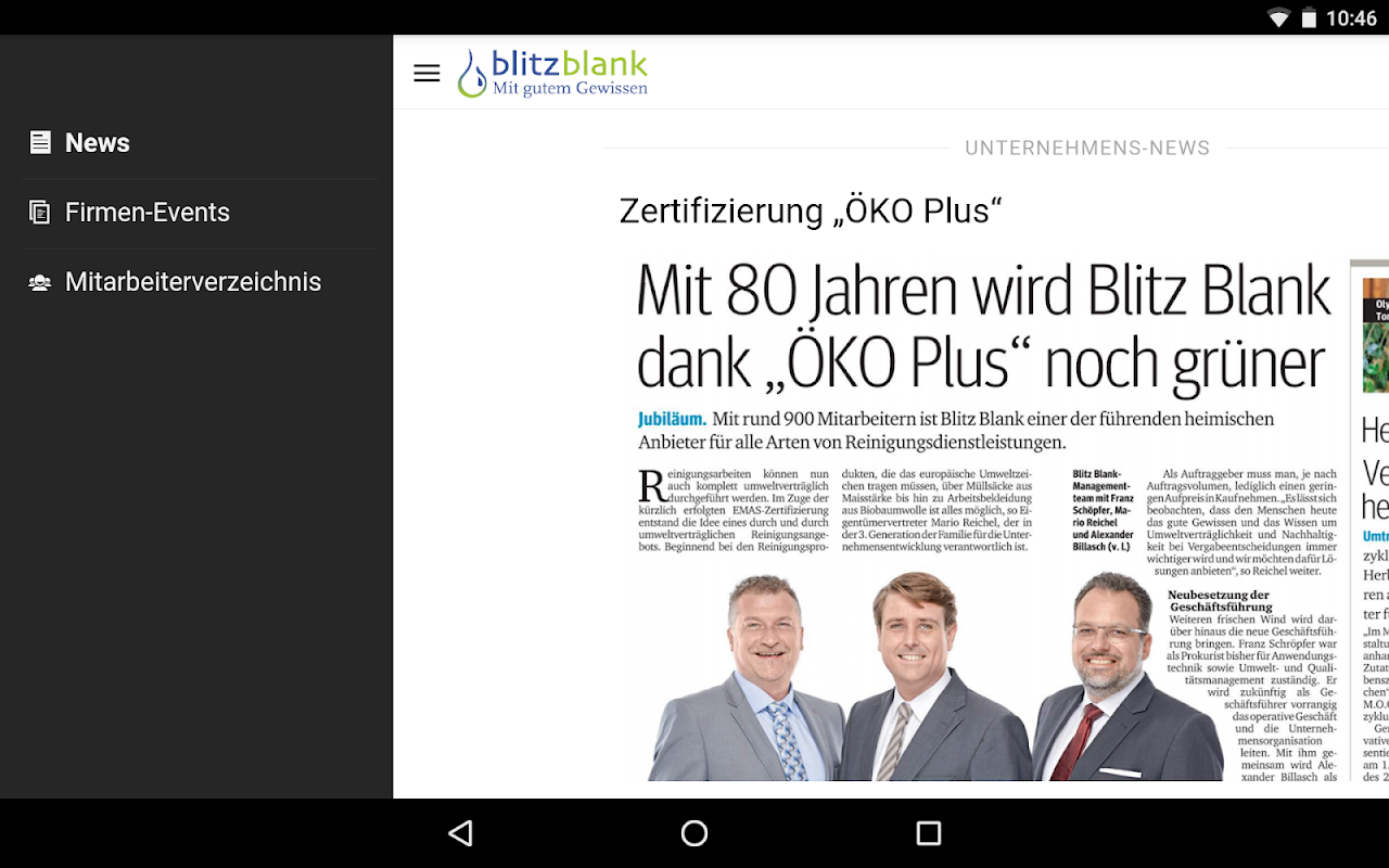 La aplicación móvil de BlitzBlank empresa de servicios de limpieza GmbH.
