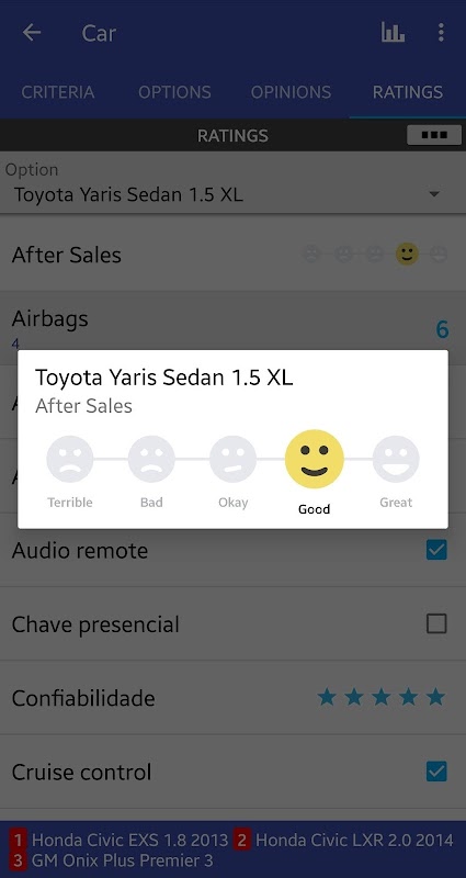 MyDecision le permite puntuar y comparar opciones rápidamente en función de cualquier cantidad de criterios con diferentes ponderaciones y generar informes de clasificación y gráficos de comparación que pueden ayuda en el proceso de decisión.