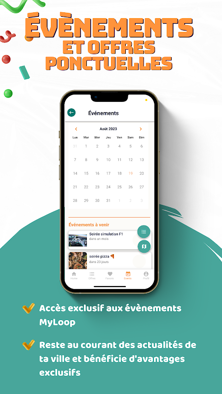 📅 Pestaña de eventos: acceso exclusivo a los eventos de MyLoop. Descubra también los acontecimientos imperdibles en Caen y Rennes.