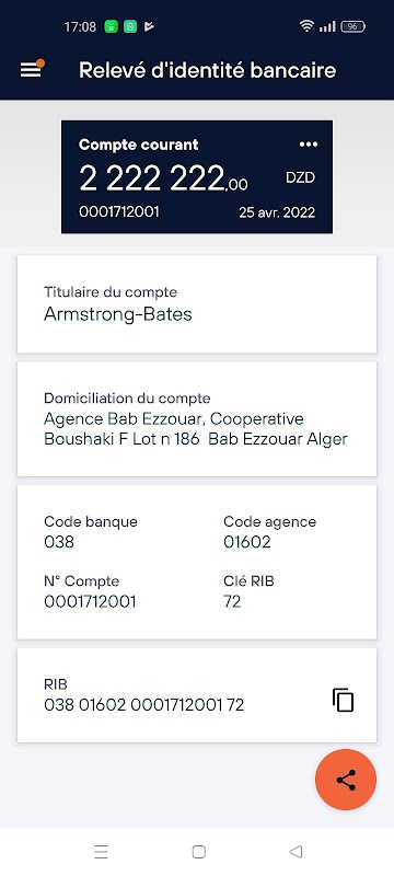 - Ver y compartir fácilmente tus datos bancarios (RIB),
