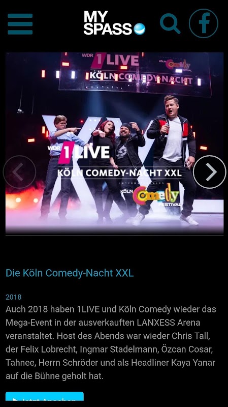 Du gehst zum Lachen nicht in den Keller? Wenn doch, dann nimm Dein Android-Gerät mit! Denn mit der MySpass-App kannst Du immer und überall reinstes Comedy-Gold genießen. Bei MySpass gibt es ganze Folgen und Clips von Deutschlands besten Comedy-Shows wie LUKE! Die Woche und ich, LUKE! Die Schule und ich, CATCH! mit Luke Mockridge, PussyTerror TV mit Carolin Kebekus, Nightwash, Die Faisal Kawusi Show, Stromberg, Pastewka, Ladykracher, Die Bülent Ceylan Show, Schlag den Raab, Schlag den Star, TV total, TV total-Events wie WOK WM, Turmspringen, Stock Car & Co und vielen mehr.
