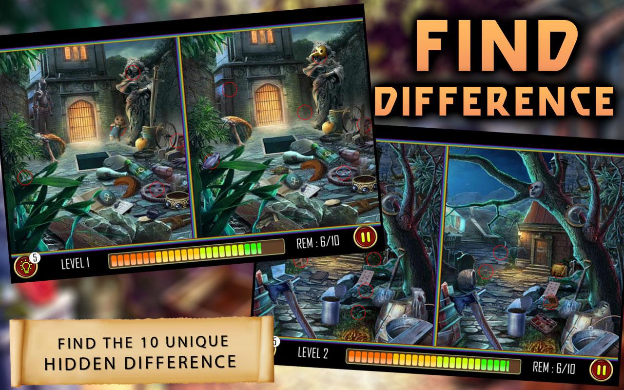 Find Differences : Find the 10 hidden differences from the beautiful hidden objects games to solve the puzzle. Just simple rules is to find 10 hidden difference between two pictures of rooms , garden , hospital , mystery crime case , beautiful nature, kids , animal , flower to solve the mystery of city and unlock new case of advanture.