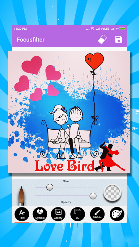 *Provide 100+ unique heart emojis, couple sticker, love sticker, wedding anniversary , magic brush, Paint Brush(Sketchbook) and different color to express your drawing text on photo.