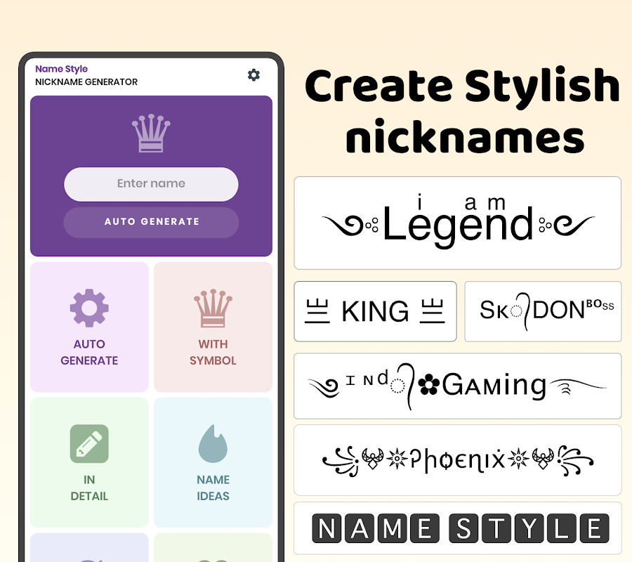 Bienvenido a la aplicación de generación de apodos de estilo de nombre. Aquí puedes crear apodos únicos gratis, bgmi y otros juegos y también para las redes sociales.