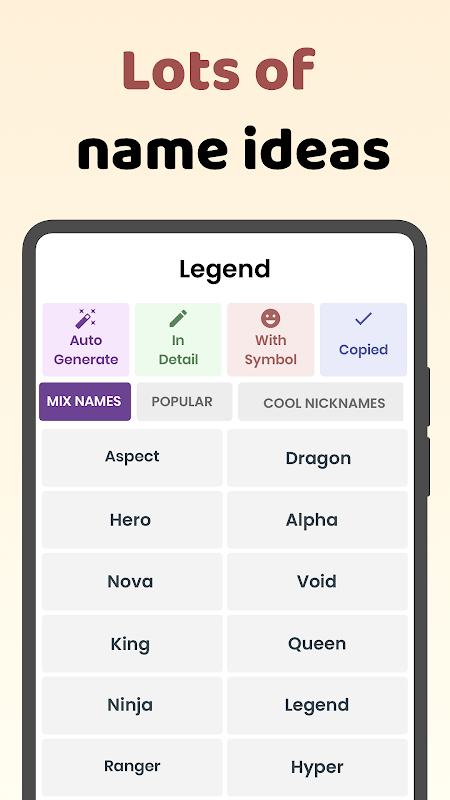 Ingrese su nombre y la función de generación automática generará más de 100 apodos elegantes. Úselos como nombre de juego o como nombre de usuario en las redes sociales.