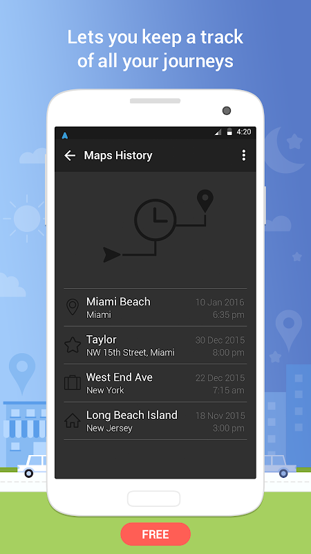 The History function lets you keep a track of all your journeys including destination names, addresses and time details.