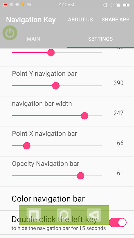 Ajuste la posición de la barra de navegación: puede ajustarla en la configuración de la aplicación o mantener presionado el botón izquierdo durante mucho tiempo, después de unos segundos puede arrastrar a la posición deseada.