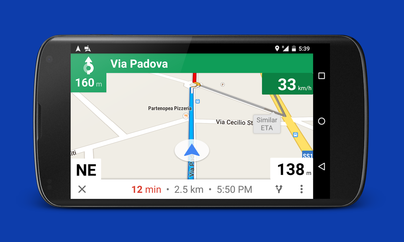 NavMeter allows you to display speed, altitude, compass, and coordinates indicator over the navigators that don’t provide this informations (like the Google Maps one).