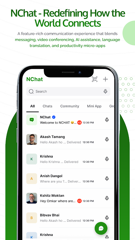 NChat es una plataforma de comunicación integral para empresas que combina potentes funciones de mensajería con herramientas empresariales integradas. NChat ofrece comunicación segura en tiempo real con funciones avanzadas para equipos, empresas y comunidades.