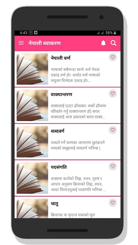 Gramática nepalí - नेपाली व्याकरण Book es una aplicación completamente GRATUITA. Es una aplicación educativa. Esta aplicación contiene una colección de toda la gramática nepalí. Ahora prepare nepali byakaran desde el móvil fácilmente.