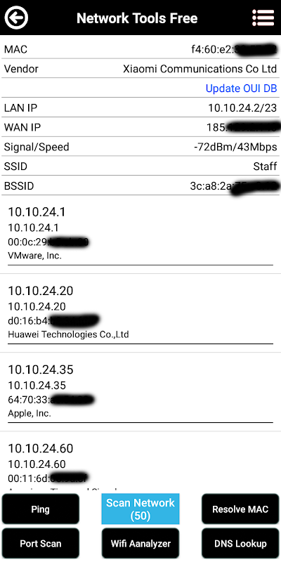 * MAC address vendor detection.