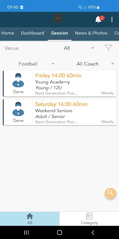No se pierda nunca lo que sucede dentro de nuestro programa y manténgase en contacto fácilmente con el entrenador de su hijo.