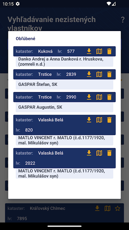 Esta aplicación se creó con el fin de simplificar la búsqueda en la lista de propietarios desconocidos, que comenzó a publicar el Slovak Land Fund (SPF). Los datos utilizados en la aplicación están disponibles públicamente en el sitio web oficial del SPF. Los datos publicados están en formato .csv y se dividen en varios archivos. Juntos, estos archivos contienen millones de registros. La búsqueda de estos archivos es larga y complicada para el usuario promedio. Es por eso que creamos esta aplicación. Gracias a él, puedes buscar fácilmente las propiedades de tus antepasados ​​entre millones de datos en una fracción de segundo.