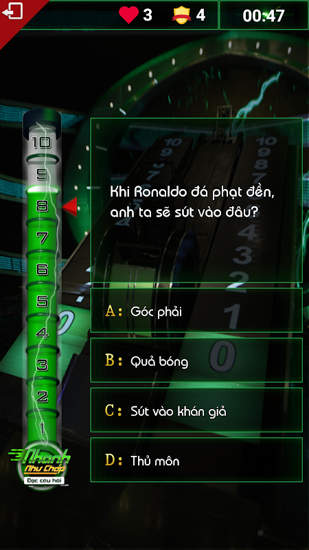 ✔ Trả lời đúng 10 câu hỏi liên tiếp trong thời gian 2 phút sẽ dành chiến thắng, trả lời sai sẽ trở về mốc số 0