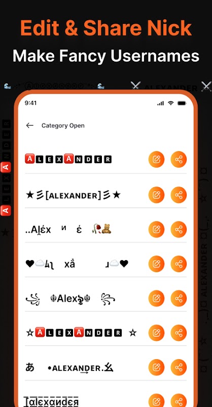 Con el creador de nombres con estilo gratuito, cree su propio nombre de jugador, apodos elegantes para juegos y redes sociales y haga alarde de su apodo lleno de fuentes elegantes y nombres elegantes. Crea un nombre elegante y distínguete de otros jugadores con nickfinder: aplicación de creación de nombres con estilo.