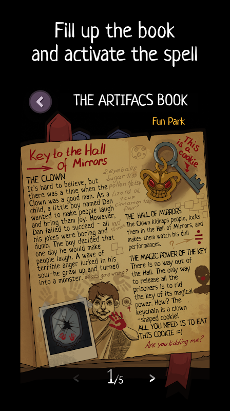 Each artifact contains a piece of dark power. Find them all to defeat evil!