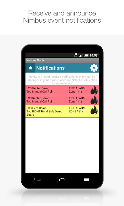 Sistemas de control de LAN puede suministrar un teléfono inteligente con la aplicación Notifique Nimbus precargado y asegurado.