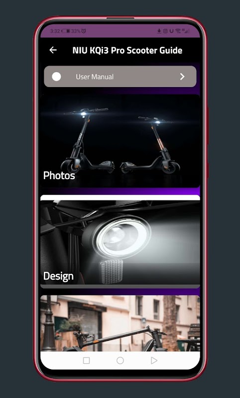 NIU KQi3 Pro Scooter Guide es una aplicación integral que brinda a los usuarios una guía completa del scooter eléctrico NIU KQi3. Esta aplicación está diseñada para que la experiencia del usuario del patinete NIU KQi3 Pro sea lo más agradable y sencilla posible. Es una aplicación imprescindible para cualquier persona que tenga o planee comprar un scooter NIU KQi3 Pro.